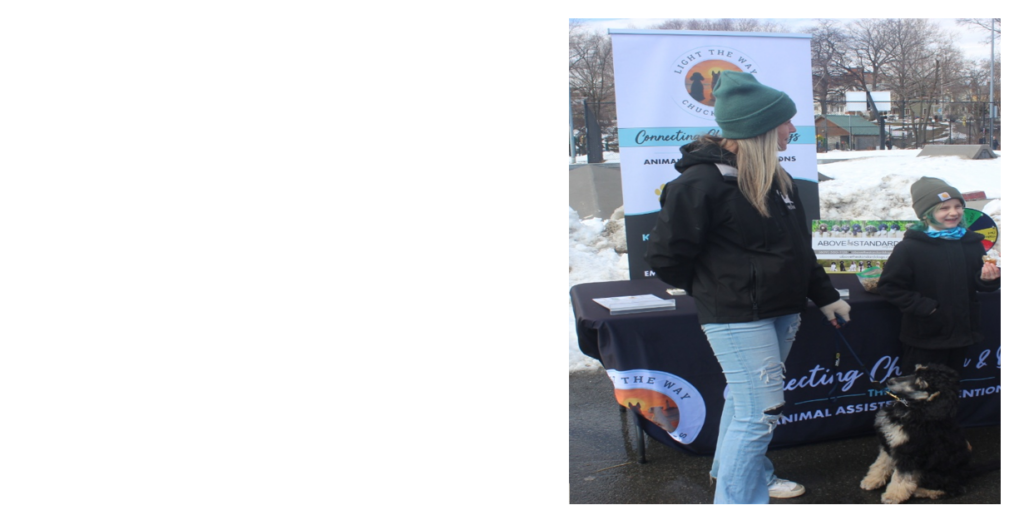 Their dog, who was being held by May’s father, kept looking at the camera, but when asked, had nothing to add to the conversation. https://youtu.be/Q1S27wx9YQg Some of the people who are in need of assistance from the Penguin Plunge also have needs other than the major medical ones. Kirsten Sally work with an organization called Chuck’s Pups, Connecting Children with Dogs. Kirsten explained that it’s Chuck’s Pups, and they started off, just working to fundraise for children to get service dogs and then they branched out a little bit.