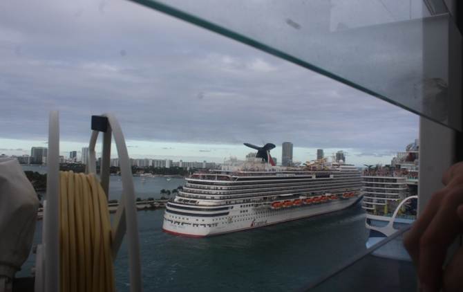 About 5 hours after we boarded the ship, we pulled out of the dock passing by the Royal Caribbean Icon of the Seas. A very big ship. Bill said it holds 7000 passengers.