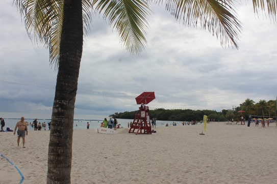 Bill stayed at the chairs. He wasn’t into taking the dive. Jose, Guillermo and I took the plunge. I put on my water socks and decided not to deal with the swim fins. I like the socks because I hate the feel of sand on my feet because you can never get it cleaned off completely and it ends up in your shoes. It was my first time snorkeling. I was concerned about going out too far from the shore in case my asthma acted up and the water was too deep to stand up in to catch my breath. But I loved the feel of being face down in the water and still being able to breathe. We spent about an hour or so exploring the water there. Unfortunately we didn’t get to see any fish under there with us, only water and sand.