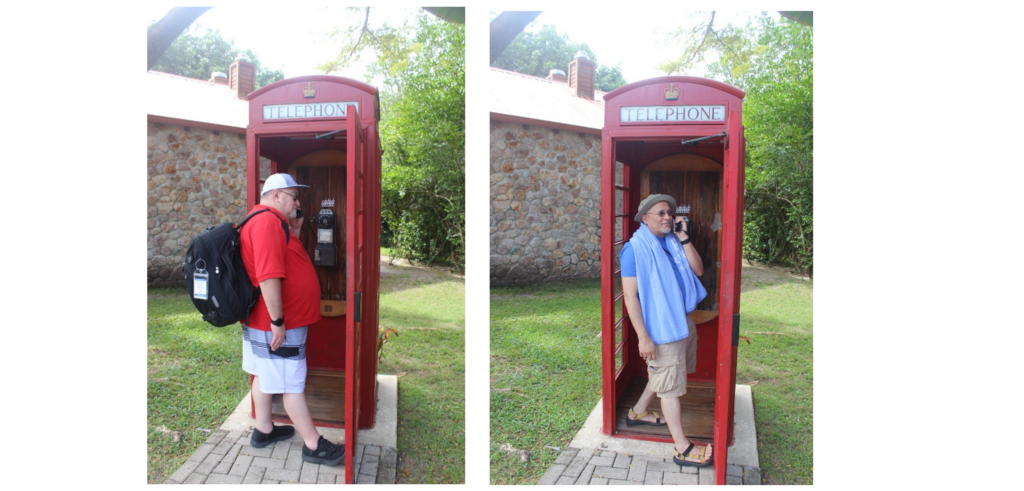Bill and Jose got ahead of us and were already on their way back to the ship. Guillermo and I found a non-functional antique on the way out and decided to be touristy with it. When I picked up the phone, I decided to play a little Groucho Marx, I said. “Room service? Send up a bigger room.” Corny, but fun.
