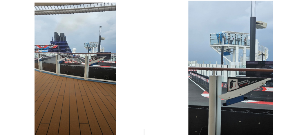 Day 5 of the cruise was mostly uneventful. It was a full day on board ship. We got up, went to breakfast and enjoyed the relaxation of not having to rush to get to a shore excursion. During the day we went exploring the ship in areas we had yet to go. We went up to the go-cart track and watched them race. It was a hour wait to ride and we were not willing to stand around for it. So we went up to the observation level and observed. The top of the water slide was also at that level.