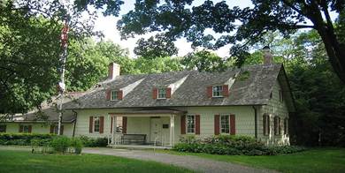 The early Dutch settlers were practical and industrious. They built sturdy homes of local sandstone — one-and-a-half stories tall, with thick walls, low-beamed ceilings, and wide central fireplaces for cooking and warmth. Roofs often had the familiar gambrel shape, sloping outward to create overhangs that protected the walls from rain and snow. Many of these houses still stand today in Tappan, Blauvelt, and Clarkstown, their date stones carved with the initials of the original owners.