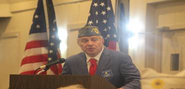 In the interim between speakers, a list of the elected officials and other dignitaries was announced. Then The Keynote Speaker Gary Ginsburg who recently concluded his one-year term ad the 93rd National Commander of the Jewish War Veterans of the USA, took to the podium.
