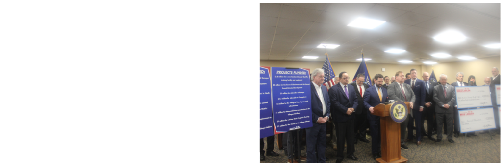 Lawler introduced the event. “Good morning everyone and thank you all for being here. I want to start by thanking the local elected officials joining us today and the fact that we have representatives from municipalities across the 17th Congressional District here this morning says a lot about what this funding is really about partnership across federal and local entities. Local government is where a lot of the work that directly impacts people’s lives actually happens, whether it’s improving roads and bridges, upgrading water infrastructure, supporting public safety, or investing in community facilities.”