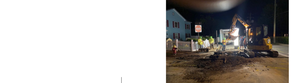 Water gushes from a ruptured main in a typical street – level watermain break. Nyack residents have seen several such incidents in recent years as the village races to repair and replace aging pipes.