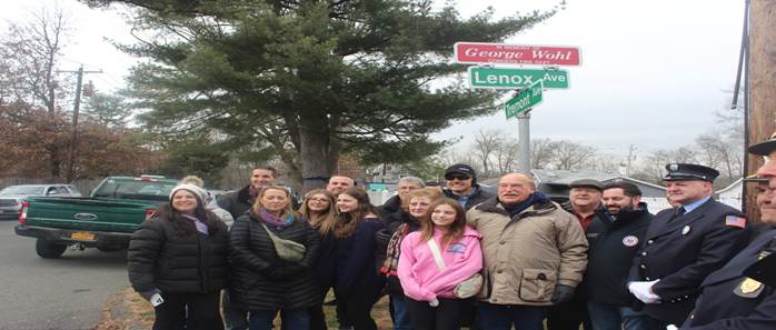 After the unveiling, Supervisor Hoehmann gave his impression of the ceremony. “We are super thankful to be able to honor George Wohl. 22 years ago today, he passed away in responding to a fire call. He was actually putting Christmas lights up and rushing down and unfortunately on his way, he ends up having a medical episode of passing away and again. We don’t want him to be forgotten in the annals of the history of our town, and thanks to what the town board has done today, he won’t be because this is going to be forever recalled Lenox Avenue after George, who gave his life in service, and I’m thankful that the Wohl family who allowed us to do this, and I’m grateful that as the Town Supervisor this is another one of our heroes that we’re able to honor and to be able to recognize.”